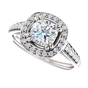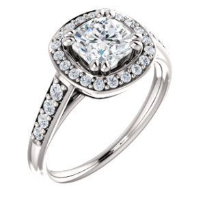 Center Stone Shape: Cushion Cut (as pictured). See this customizable ring set with other available center stone shapes here: customize setting.