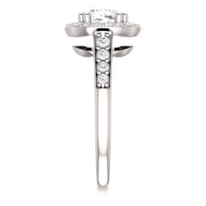 * The exact dimensions and number of side stones (including accent, pave, or halo stones) and/or the total carat weight (TCW) of your ring will vary up or down depending on your choice of any customizable options for center stone shape or carat size and finger ring size.