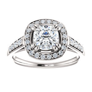 Cubic Zirconia Engagement Ring- The Julie Madison (Customizable Cushion Cut Style with Halo and Round Cut Journey-Style Band Accents)