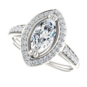 Cubic Zirconia Engagement Ring- The Julie Madison (Customizable Marquise Cut Style with Halo and Round Cut Journey-Style Band Accents)