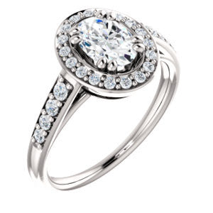 Cubic Zirconia Engagement Ring- The Julie Madison (Customizable Oval Cut Style with Halo and Round Cut Journey-Style Band Accents)
