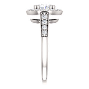 * The exact dimensions and number of side stones (including accent, pave, or halo stones) and/or the total carat weight (TCW) of your ring will vary up or down depending on your choice of any customizable options for center stone shape or carat size and finger ring size.