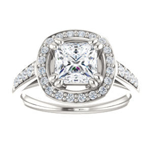 Cubic Zirconia Engagement Ring- The Julie Madison (Customizable Princess Cut Style with Halo and Round Cut Journey-Style Band Accents)