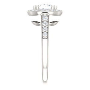 * The exact dimensions and number of side stones (including accent, pave, or halo stones) and/or the total carat weight (TCW) of your ring will vary up or down depending on your choice of any customizable options for center stone shape or carat size and finger ring size.