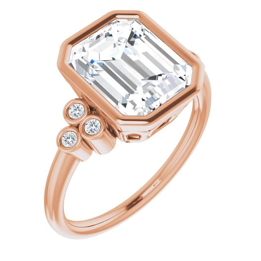 10K Rose Gold Customizable 7-stone Emerald/Radiant Cut Style with Triple Round-Bezel Accent Cluster Each Side