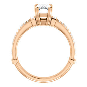 Slip this alluring sparkle-banded beauty onto her finger and watch as you begin to live the world on a string. She will glow with a sultry, slow burn when you gently say those magic words, that ask her to stay, forever, with you. Customize this ring with a 5A diamond-quality center stone in your choice of size to complement the twin sets of 4 on each side center-flanking channel-set straight baguette accents (1.25mm x 1.00mm) and 52* 1.00 mm round channel side stones.