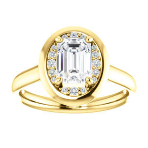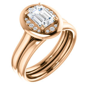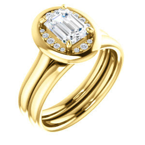 Center Stone Shape: Radiant Cut (as pictured with Emerald cut). See this customizable ring set with other available center stone shapes here: customize setting.