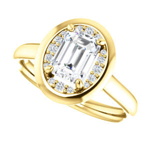 Cubic Zirconia Engagement Ring- The Kajal (Radiant Cut Tapered Faux Bezel Halo)