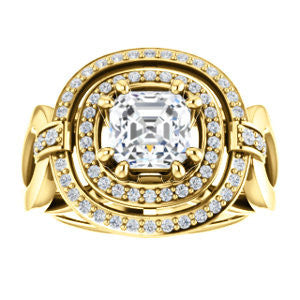 Center Stone Shape: Asscher Cut (as pictured). See this customizable ring set with other available center stone shapes here: customize setting.