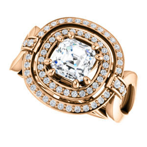Cubic Zirconia Engagement Ring- The Kandie Lue (Customizable Cathedral-set Asscher Cut with 2x Halo and Prong Accents)