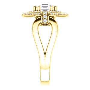* The exact dimensions and number of side stones (including accent, pave, or halo stones) and/or the total carat weight (TCW) of your ring will vary up or down depending on your choice of any customizable options for center stone shape or carat size and finger ring size.