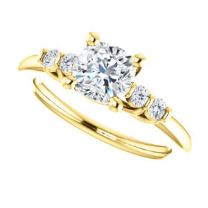 Cubic Zirconia Engagement Ring- The Karima (Customizable Cushion Cut 5-stone style with Quad Bar-set Round Accents)