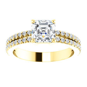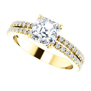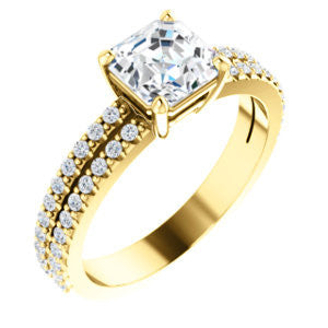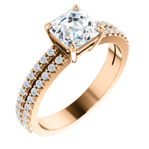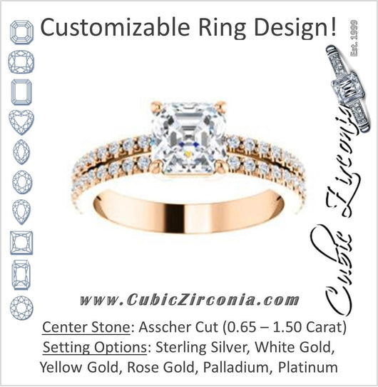 Cubic Zirconia Engagement Ring- The Kathryn (Customizable Asscher with Split Band & Round Pave Accents)