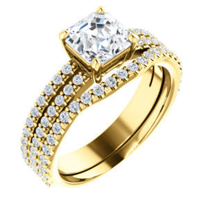Center Stone Shape: Asscher Cut (as pictured). See this customizable ring set with other available center stone shapes here: customize setting.