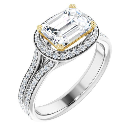 14K White & Yellow Gold Customizable Cathedral-set Emerald/Radiant Cut Style with Split-Pav? Band