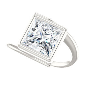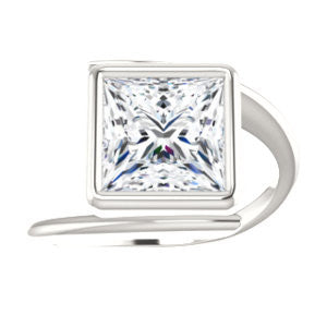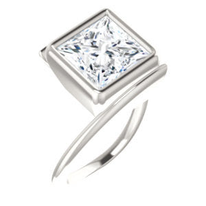 Cubic Zirconia Engagement Ring- The Lacy Michelle (Customizable Bezel-set Princess Cut Solitaire with Thin, Twisting-Bypass Asymmetrical Band)