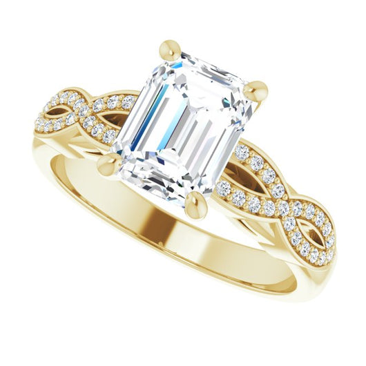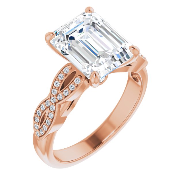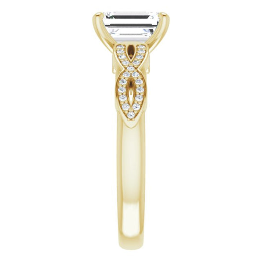 Center Stone Shape: Radiant Cut (as pictured with Emerald Cut). See this customizable ring set with other available center stone shapes here: customize setting.