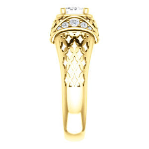 * The exact dimensions and number of side stones (including accent, pave, or halo stones) and/or the total carat weight (TCW) of your ring will vary up or down depending on your choice of any customizable options for center stone shape or carat size and finger ring size.