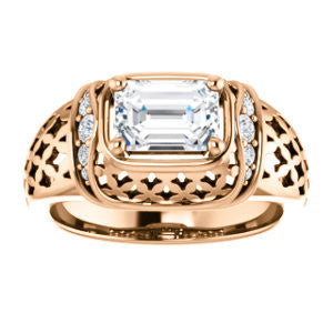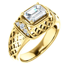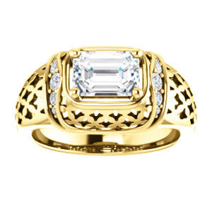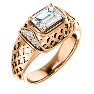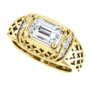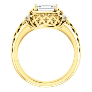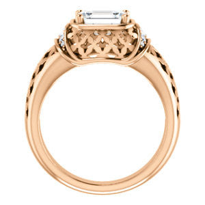 Cubic Zirconia Engagement Ring- The Leilani (Customizable Emerald Cut Vintage Crown Setting with Oversized Crosshatch Band)