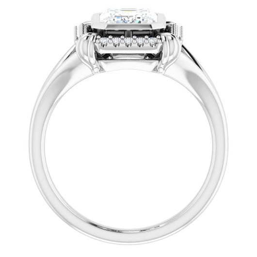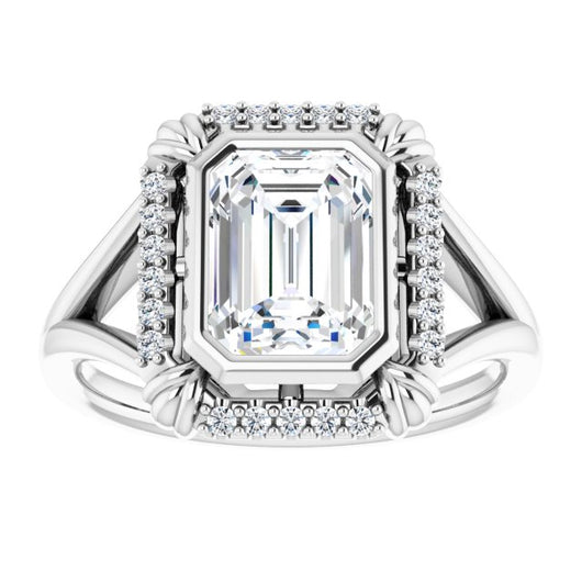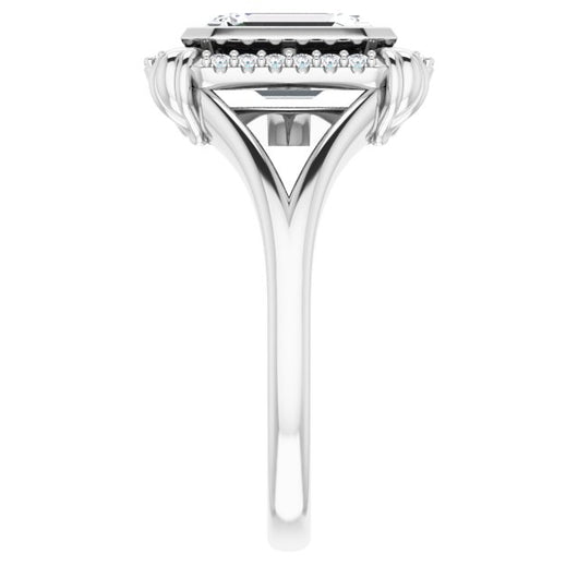 10K White Gold Customizable Emerald/Radiant Cut Design with Split Band and "Lion's Mane" Halo