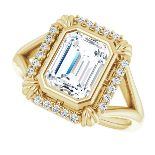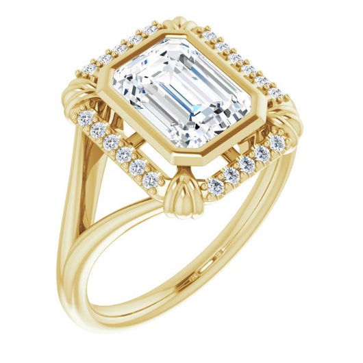 10K Yellow Gold Customizable Emerald/Radiant Cut Design with Split Band and "Lion's Mane" Halo