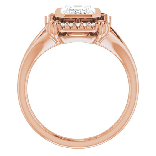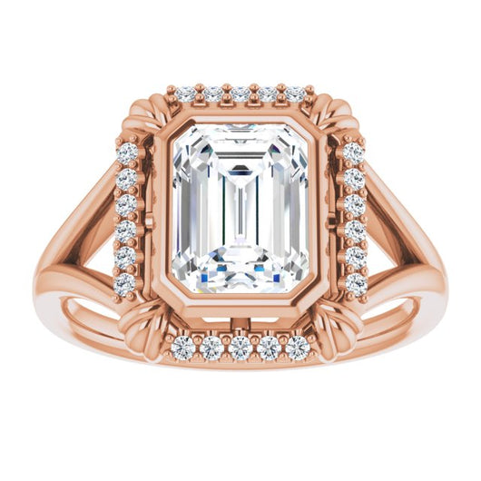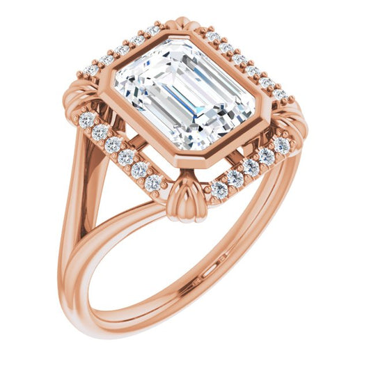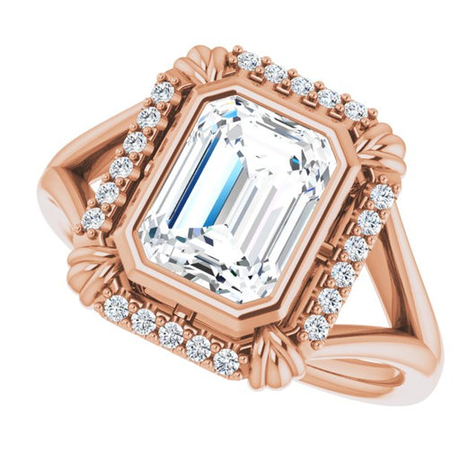 10K Rose Gold Customizable Emerald/Radiant Cut Design with Split Band and "Lion's Mane" Halo