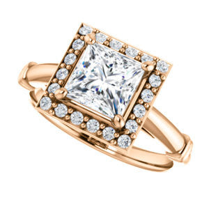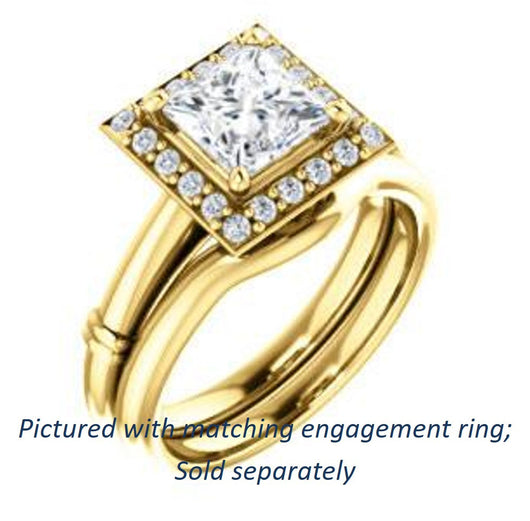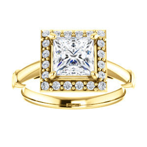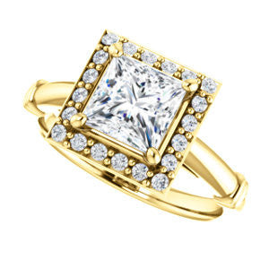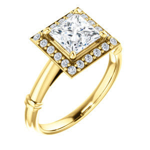 Tell her you're the strong, reliable man for her right arm when you make her a gift of this simple halo-style AAAAA diamond-quality Cubic Zirconia engagement ring with customizable setting in any of seven center stone shapes (pictured and priced here in Princess Cut, or use the "customize setting" link to see and purchase  other shapes). Sixteen (16)* round-cut, 1.30 mm prong-set accent stones make up the spartan halo design. Available like many of our styles in white, yellow, or rose 10K Gold, 14K Gold, or 18K Gold, The Lianna is also available in Palladium, .925 Sterling Silver, and pure 950 Platinum. Embrace and celebrate the strength and durability of your love for her, a love that lifts you each up out of weakness as individuals into a powerful pair, love that transforms doubt into faith in a brighter future together...there's nothing soft about that, and never has been. Get The Lianna engagement ring as a stand-alone or together with the matching anniversary band to complete the cubic zirconia bridal set!
