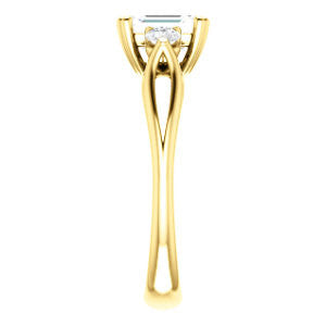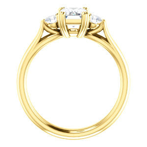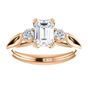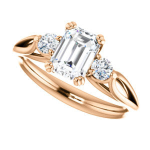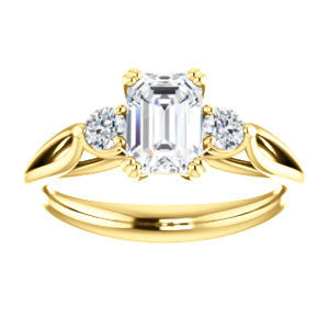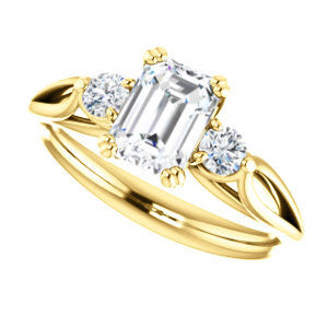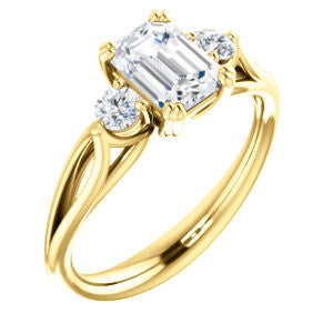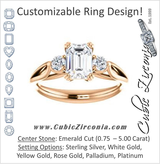 Cubic Zirconia Engagement Ring- The Libby Leigh (Customizable 3-stone Emerald Cut Design with Flanking Round Accents and Wide Curve-Split Band)