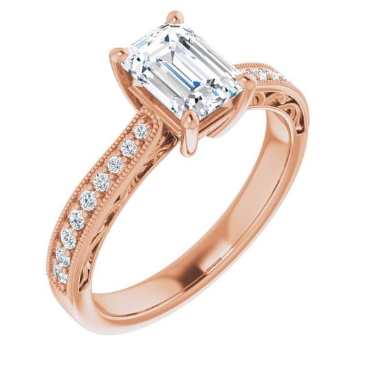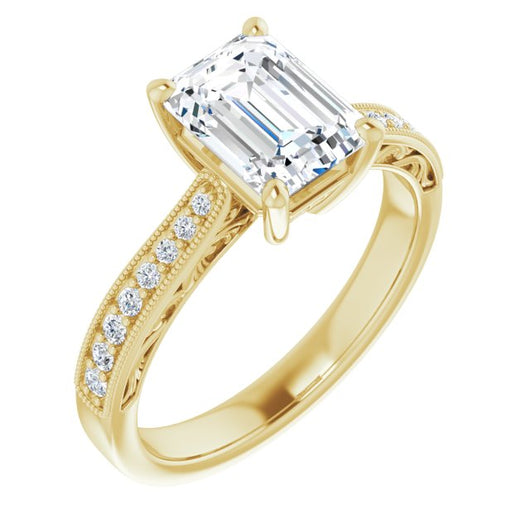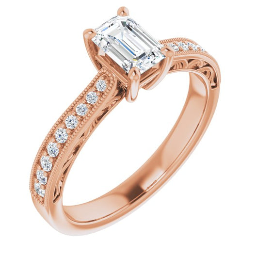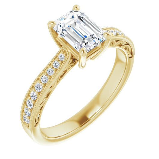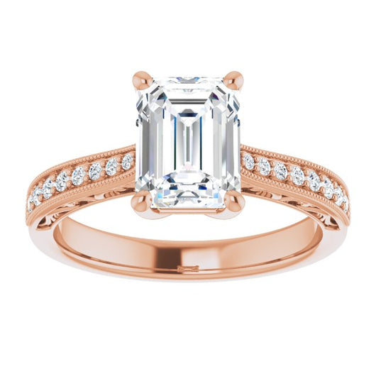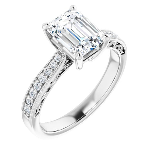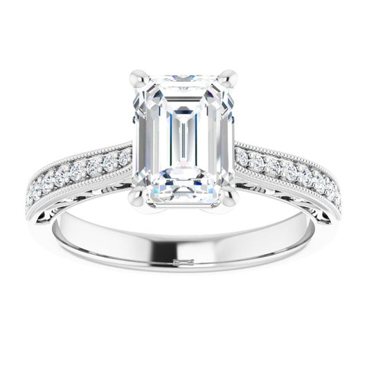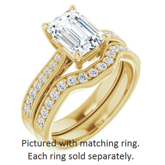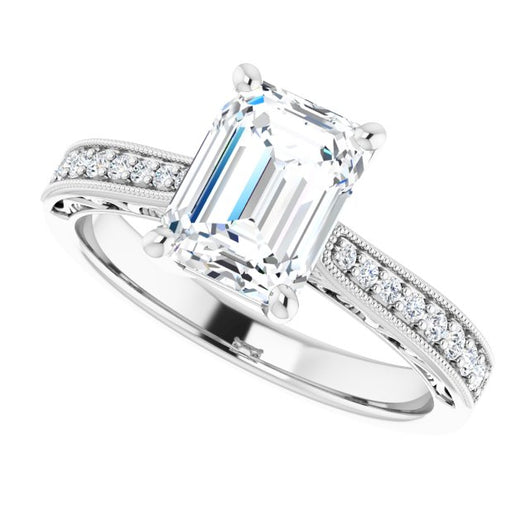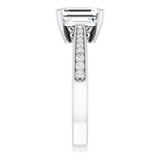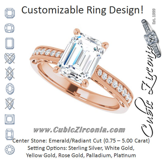 Center Stone Shape: Emerald Cut (as pictured). See this customizable ring set with other available center stone shapes here: customize setting.