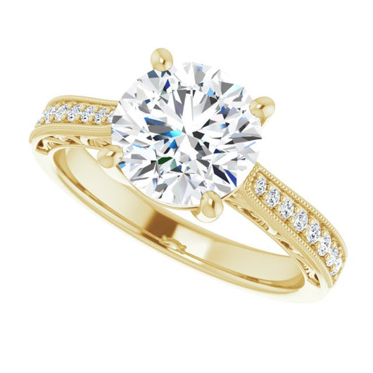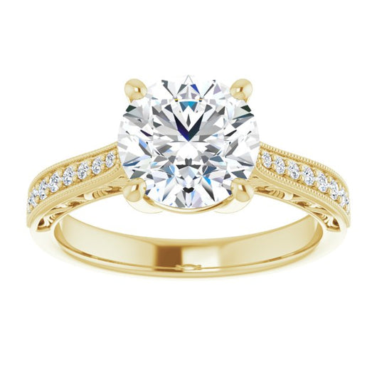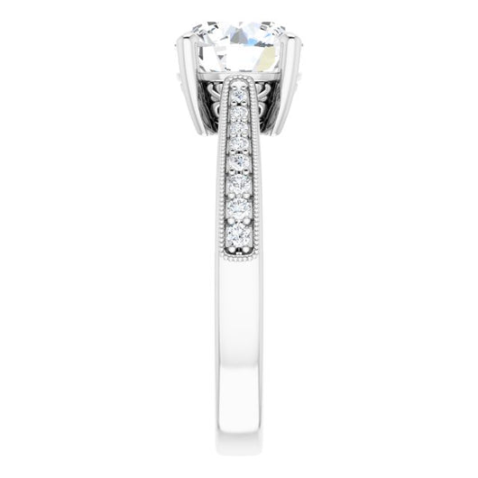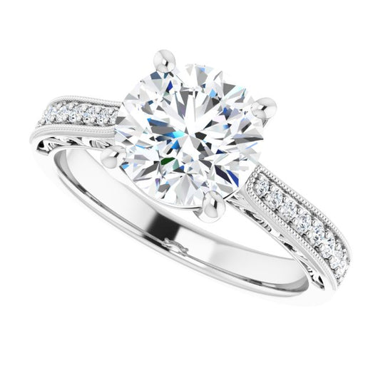 Center Stone Shape: Round Cut (as pictured). See this customizable ring set with other available center stone shapes here: customize setting.