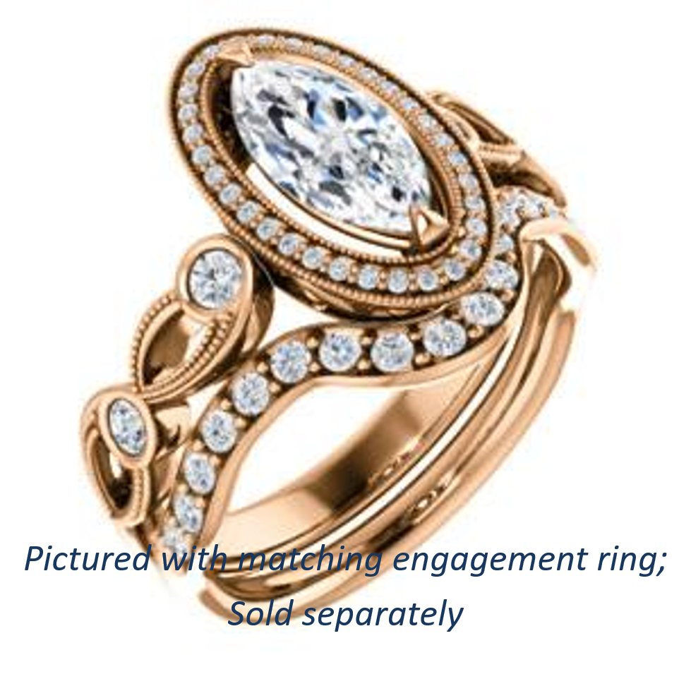 Cubic Zirconia Engagement Ring- The Lois Belle (Customizable Marquise Cut Halo-Style with Twisting Filigreed Infinity Split-Band)