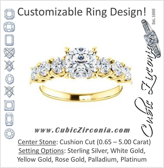 Cubic Zirconia Engagement Ring- The Lorelei (Customizable Enhanced 7-stone Cushion Cut Style with Pavé Band)