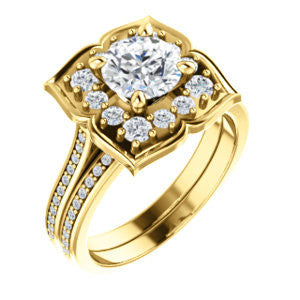 Center Stone Shape: Round Cut (as pictured). See this customizable ring set with other available center stone shapes here: customize setting.