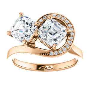 Cubic Zirconia Engagement Ring- The Lupita (Customizable Enhanced 2-stone Asymmetrical Asscher Cut Design with Semi-Halo)