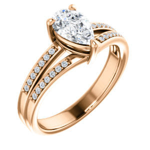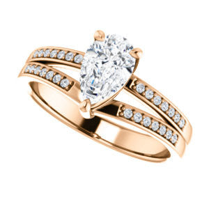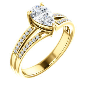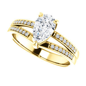 Center Stone Shape: Pear Cut (as pictured). See this customizable ring set with other available center stone shapes here: customize setting.