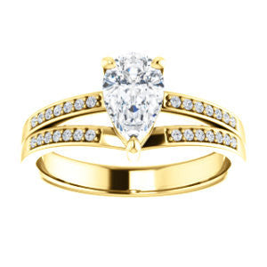 Cubic Zirconia Engagement Ring- The Lyla Ann (Customizable Pear Cut Design with Wide Double-Pavé Band)