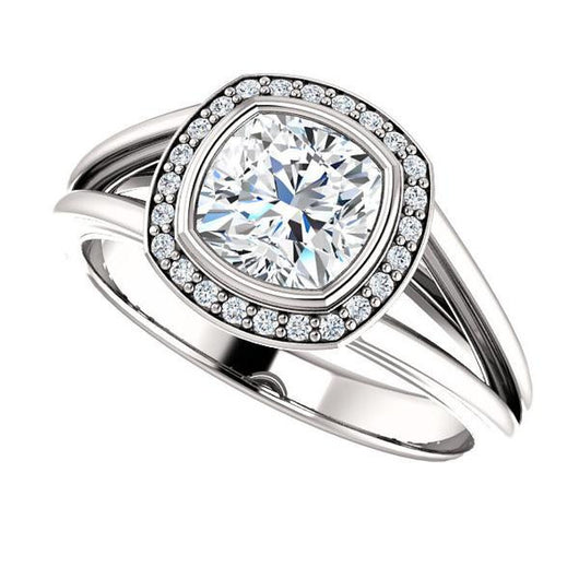 Cubic Zirconia Engagement Ring- The Mackenzie (Customizable Cushion Cut Bezel-set Split band with Halo)