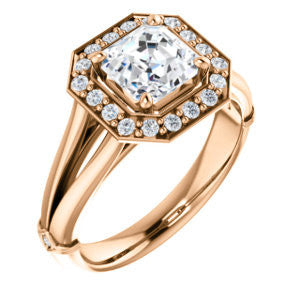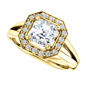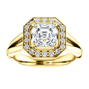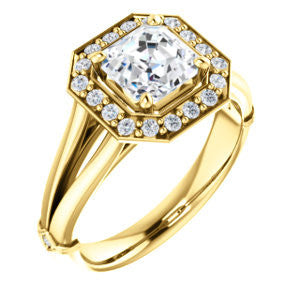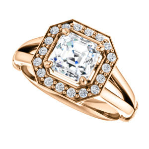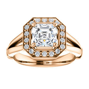 Cubic Zirconia Engagement Ring- The Madison Taylor (Customizable Asscher Cut Halo Design with Split Band and Dual Round Side-Knuckle Accents)