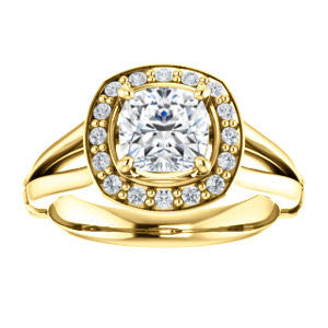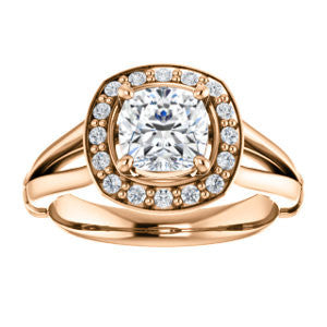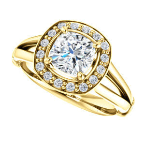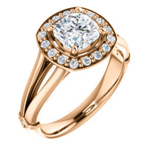 Cubic Zirconia Engagement Ring- The Madison Taylor (Customizable Cushion Cut Halo Design with Split Band and Dual Round Side-Knuckle Accents)