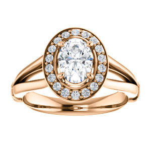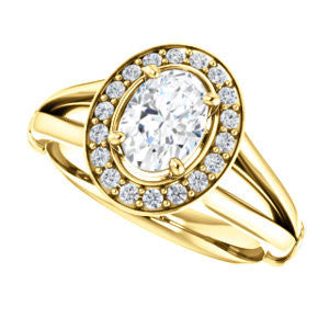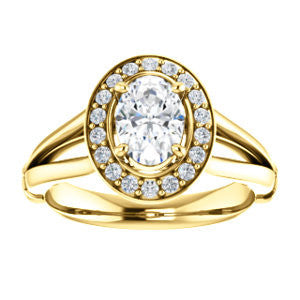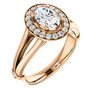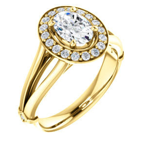 Cubic Zirconia Engagement Ring- The Madison Taylor (Customizable Oval Cut Halo Design with Split Band and Dual Round Side-Knuckle Accents)