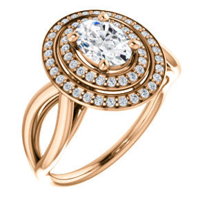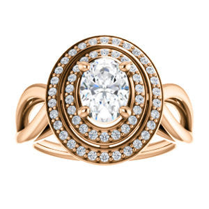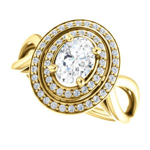 Cubic Zirconia Engagement Ring- The Magda Lesli (Customizable Double-Halo Style Oval Cut with Curving Split Band)