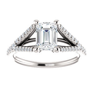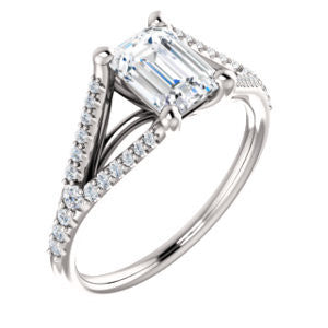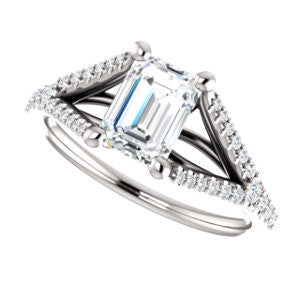 Center Stone Shape: Radiant Cut (as pictured Emerald cut). See this customizable ring set with other available center stone shapes here: customize setting.
