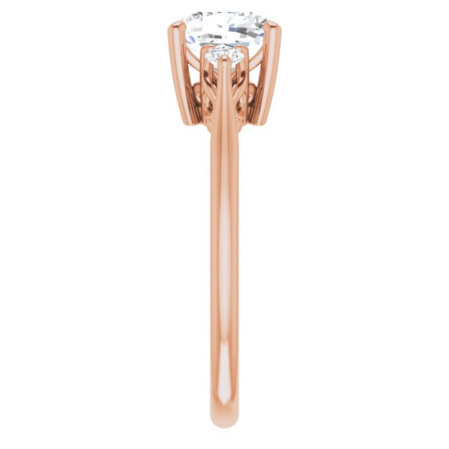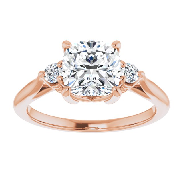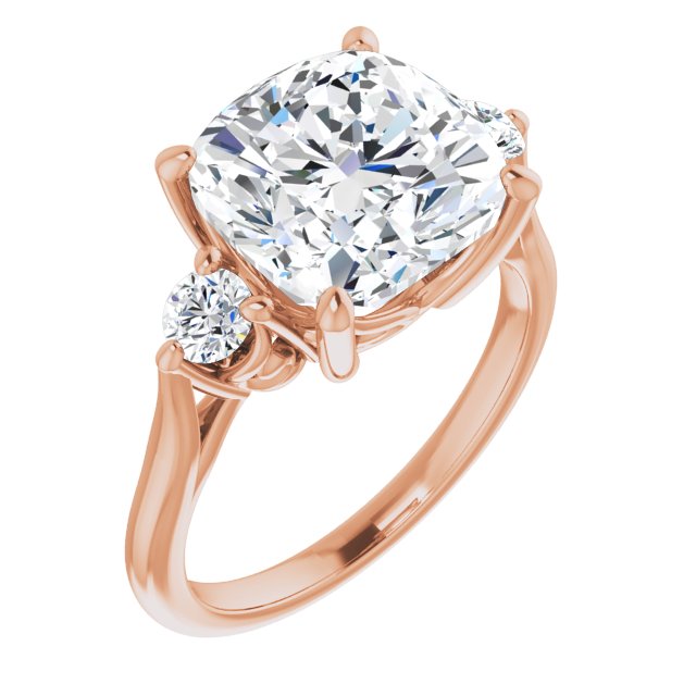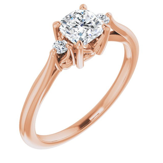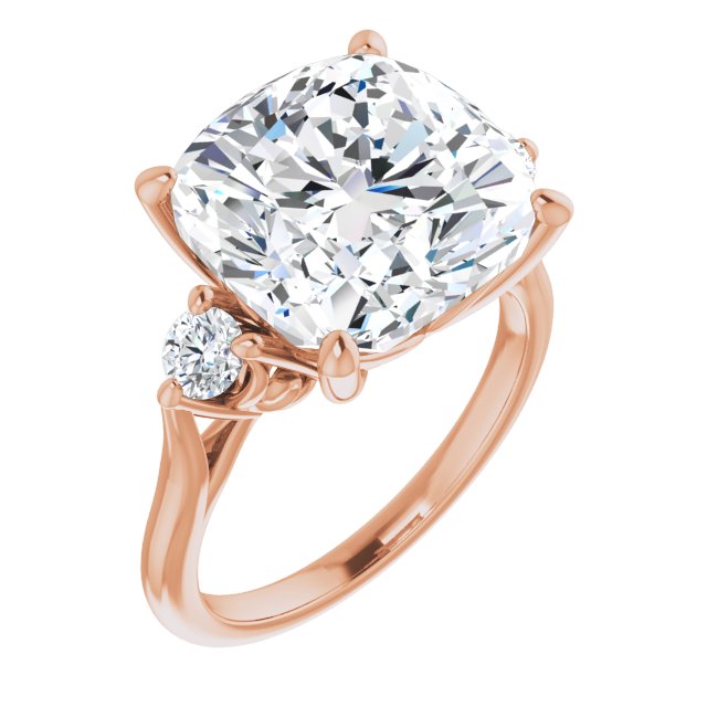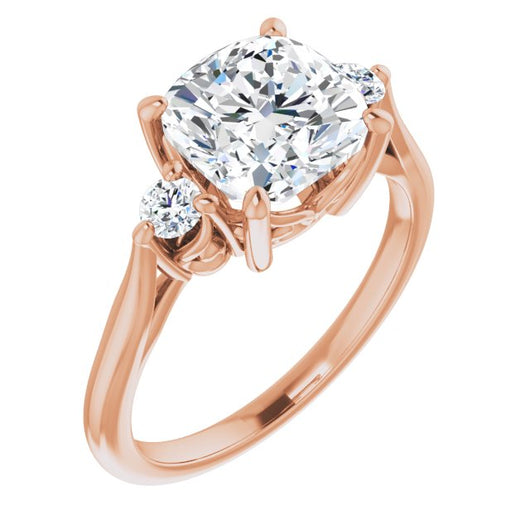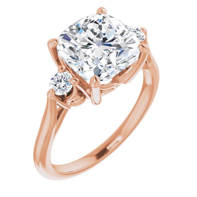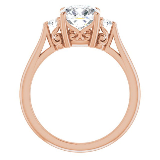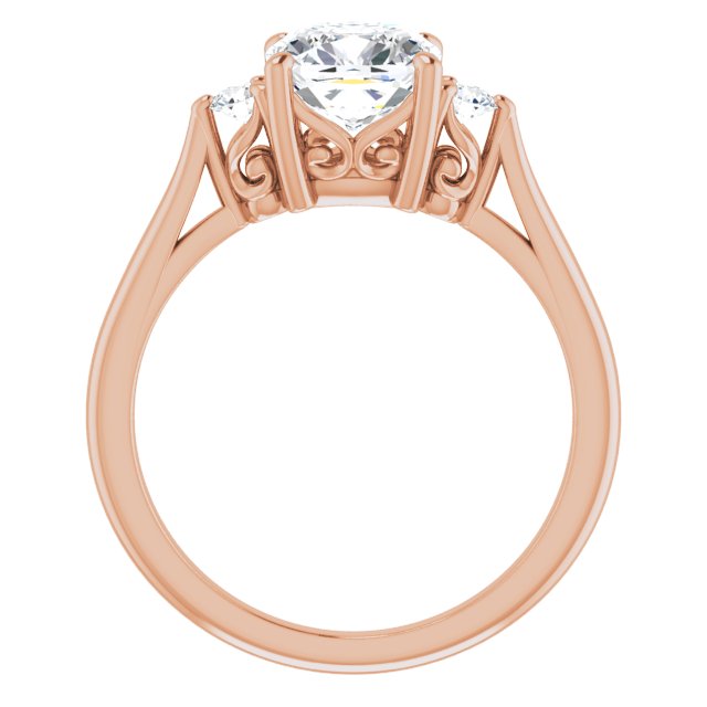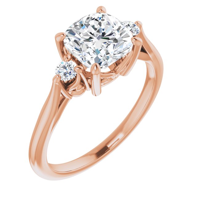 10K Rose Gold Customizable Three-stone Cushion Cut Design with Small Round Accents and Vintage Trellis/Basket