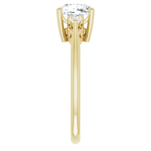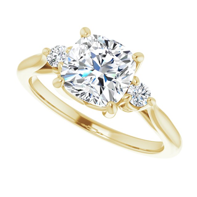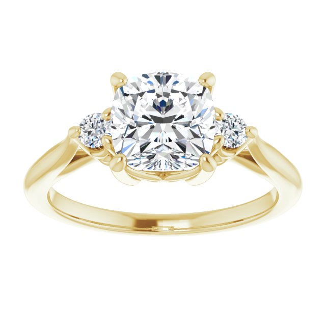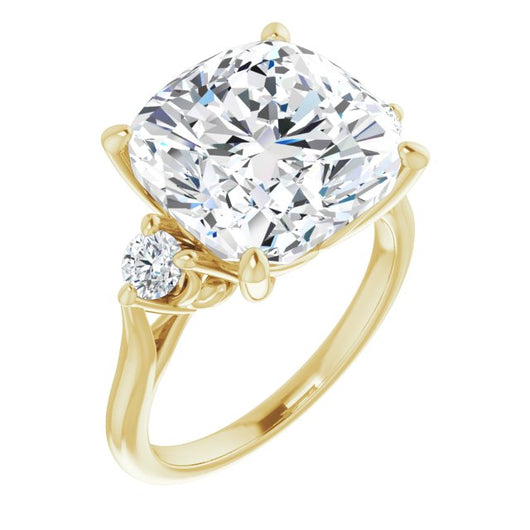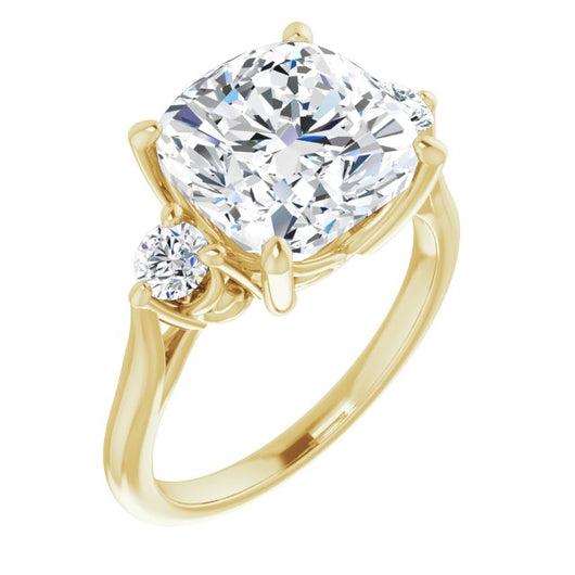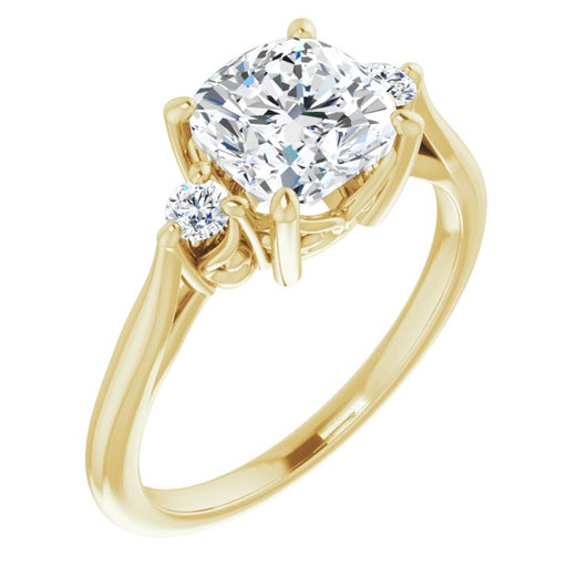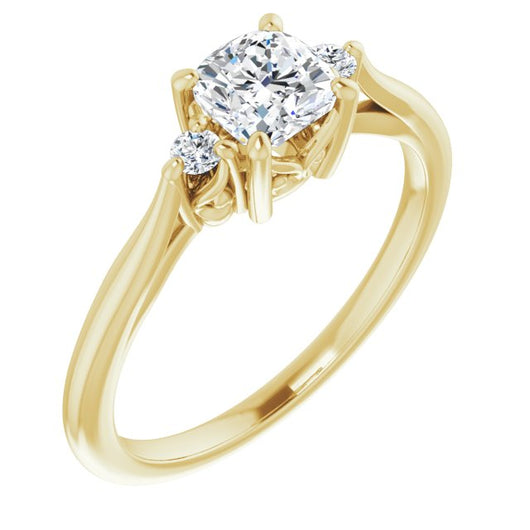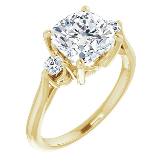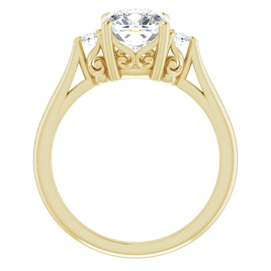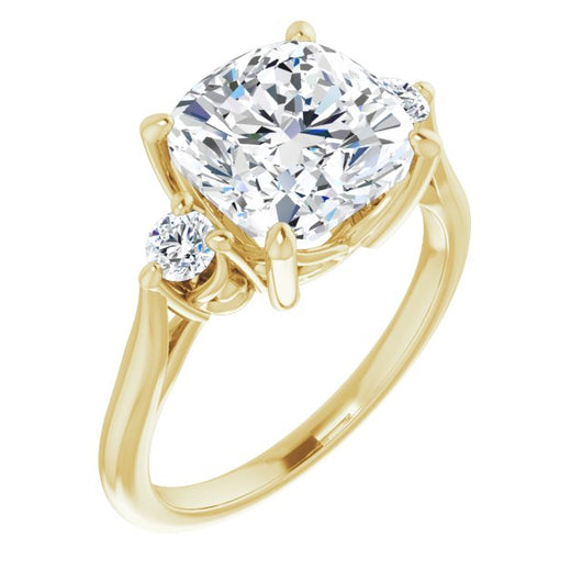 10K Yellow Gold Customizable Three-stone Cushion Cut Design with Small Round Accents and Vintage Trellis/Basket