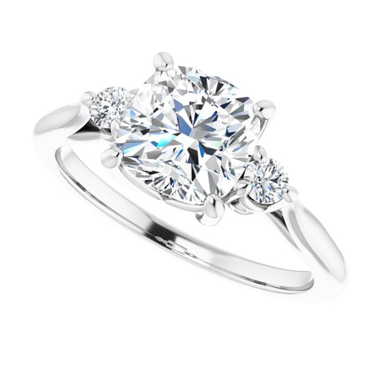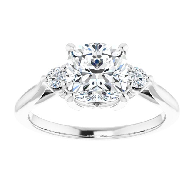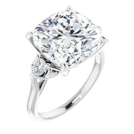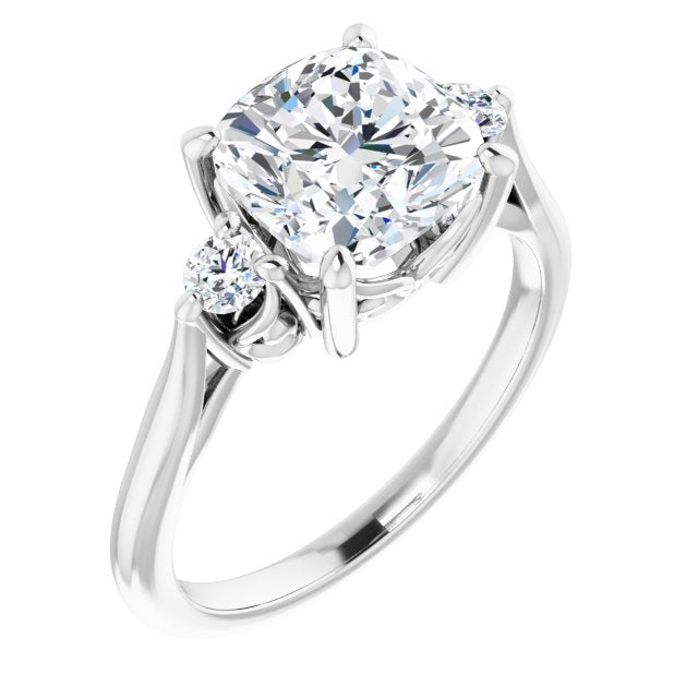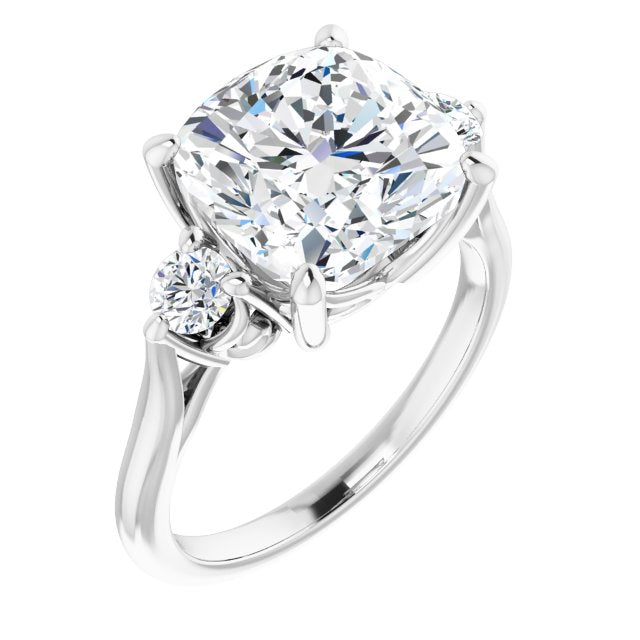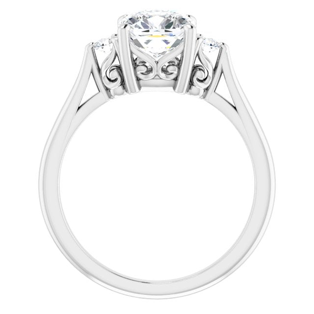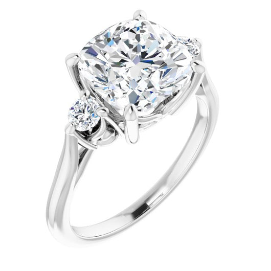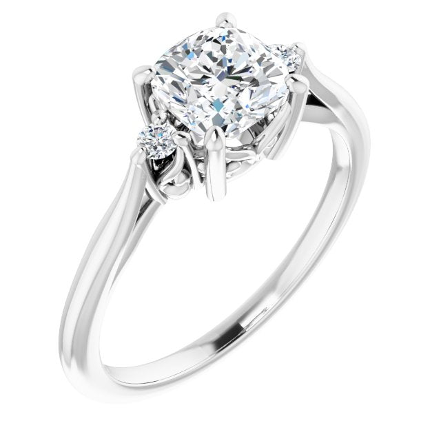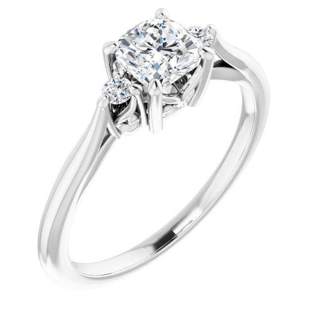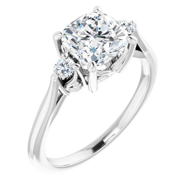 10K White Gold Customizable Three-stone Cushion Cut Design with Small Round Accents and Vintage Trellis/Basket