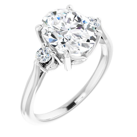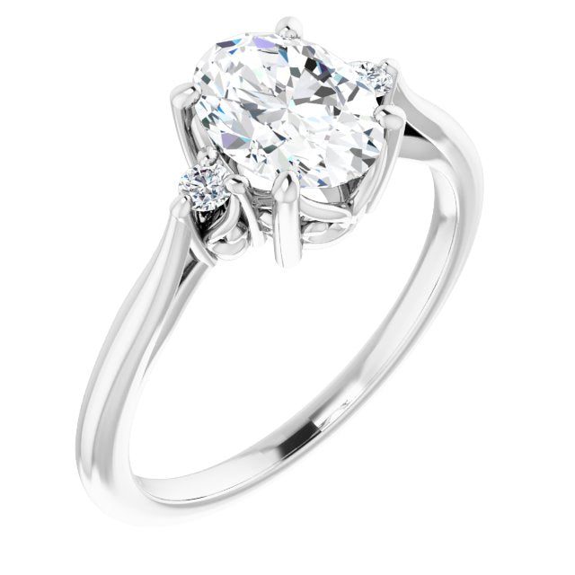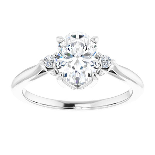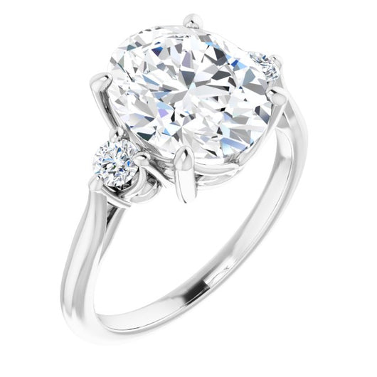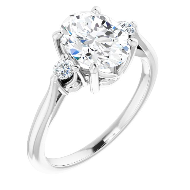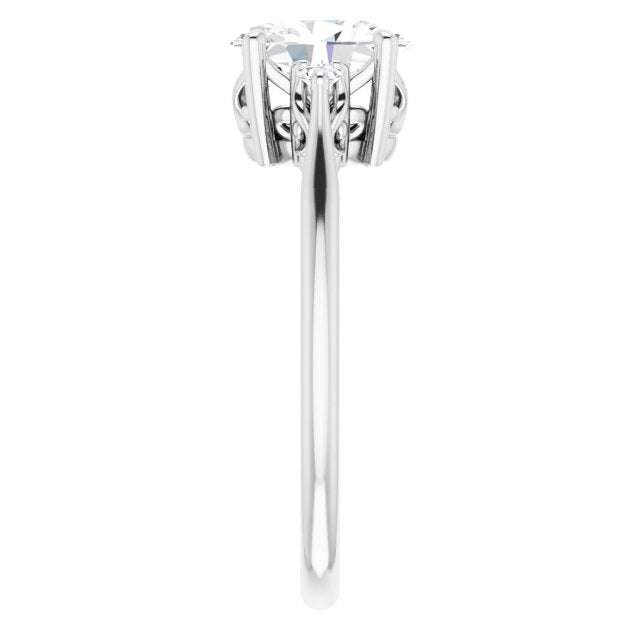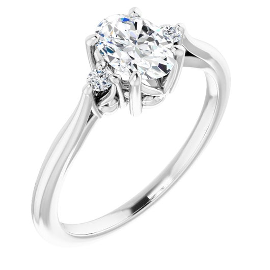 10K White Gold Customizable Three-stone Oval Cut Design with Small Round Accents and Vintage Trellis/Basket