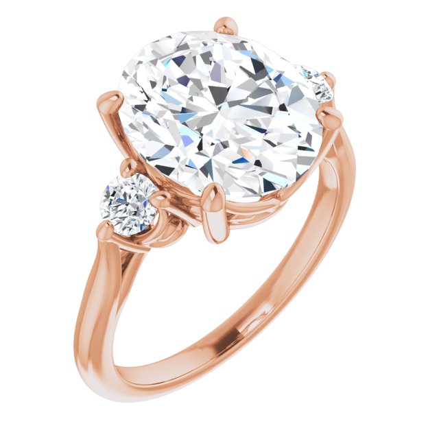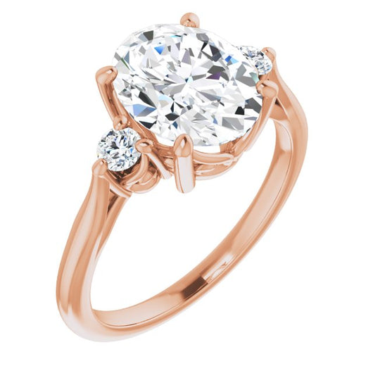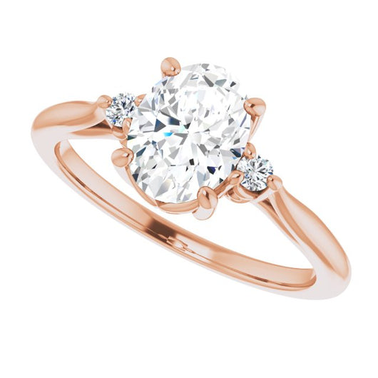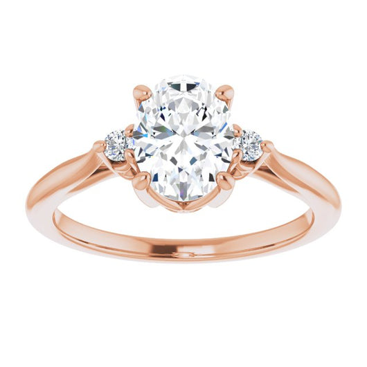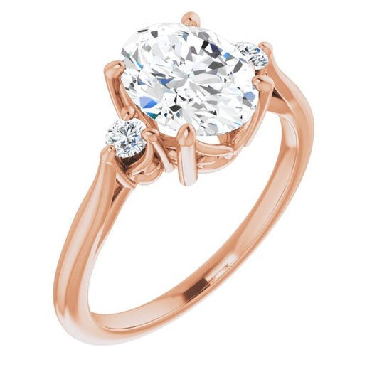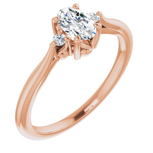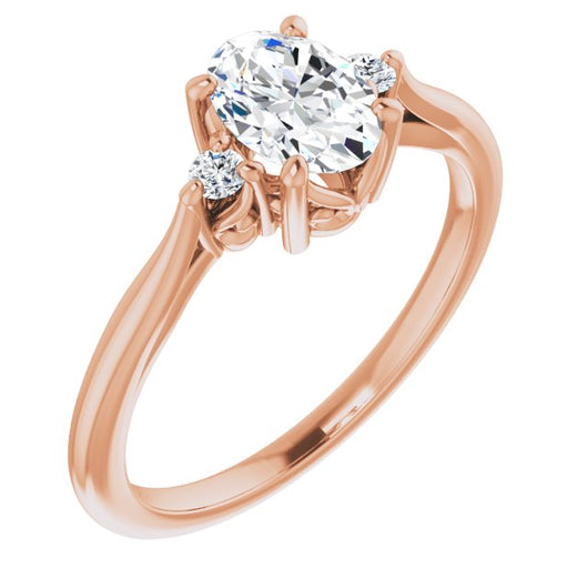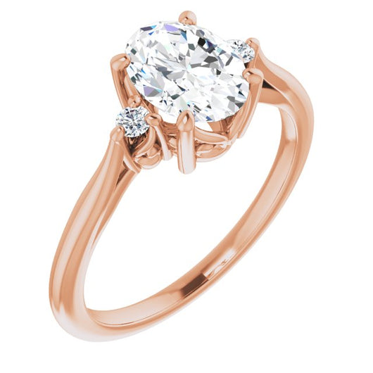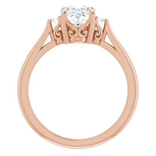 10K Rose Gold Customizable Three-stone Oval Cut Design with Small Round Accents and Vintage Trellis/Basket
