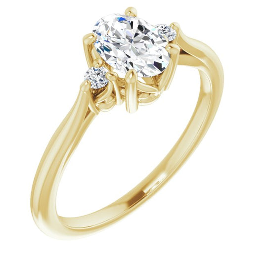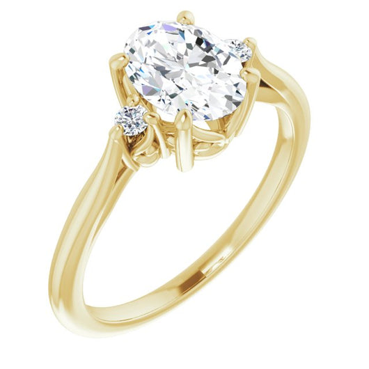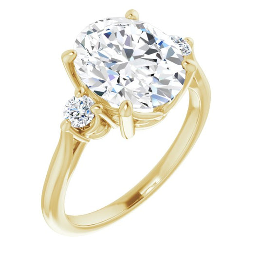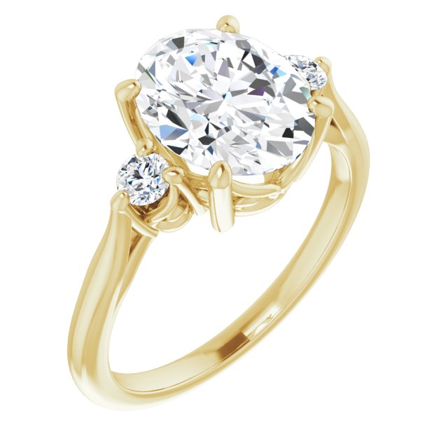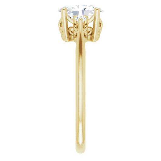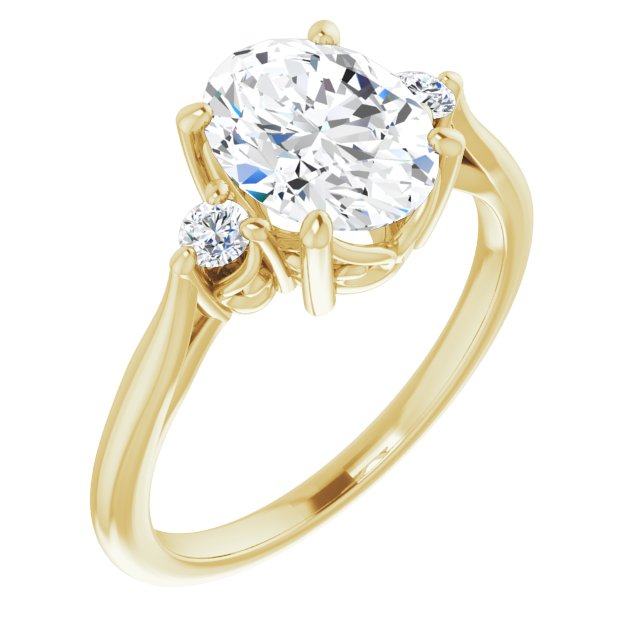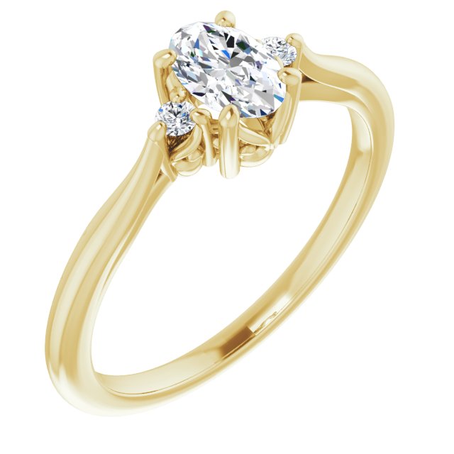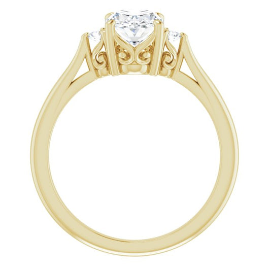 10K Yellow Gold Customizable Three-stone Oval Cut Design with Small Round Accents and Vintage Trellis/Basket