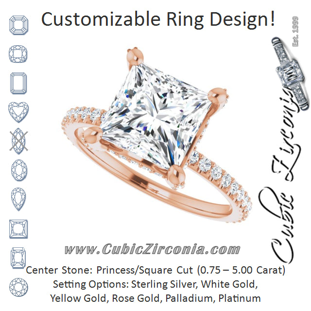 Center Stone Shape: Princess/Square Cut (as pictured). See this customizable ring set with other available center stone shapes here: customize setting.