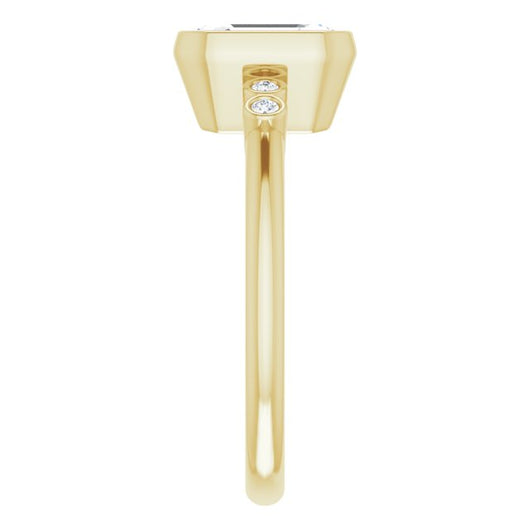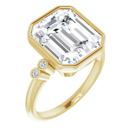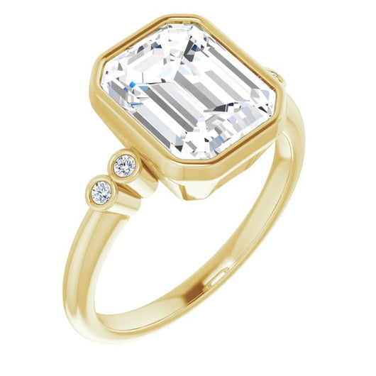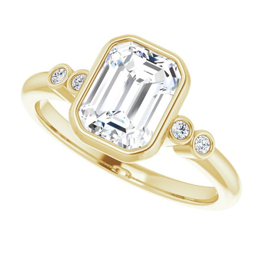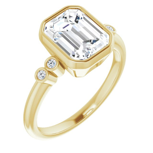 10K Yellow Gold Customizable 5-stone Bezel-set Emerald/Radiant Cut Design with Quad Round-Bezel Side Stones